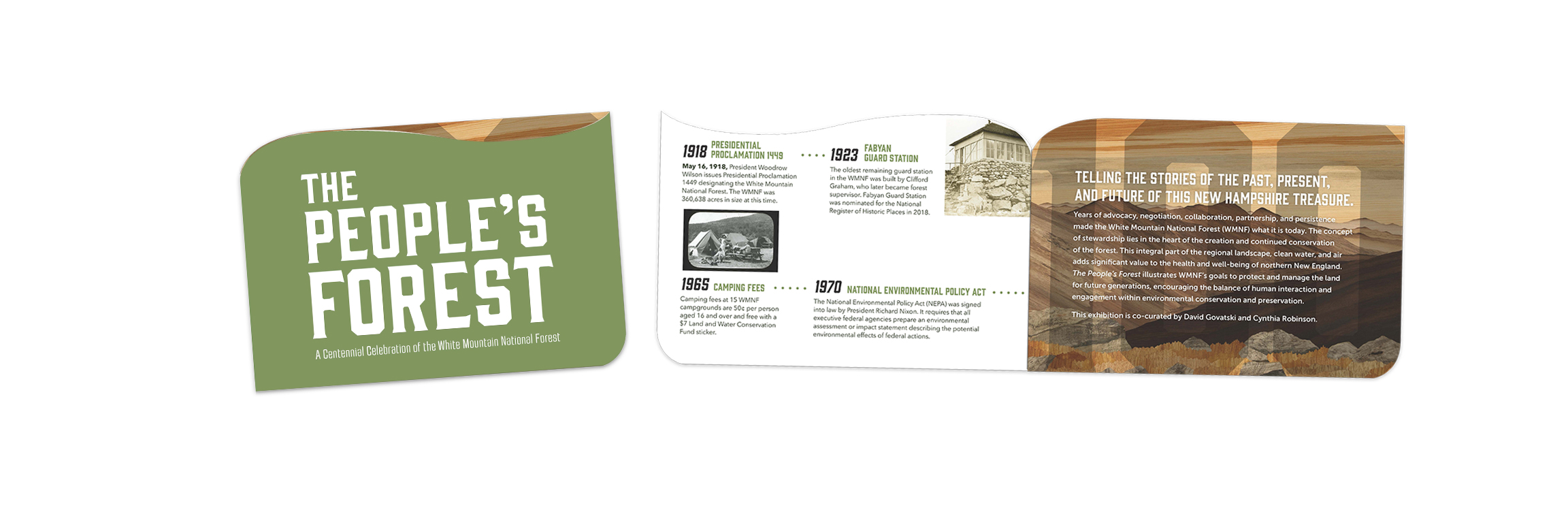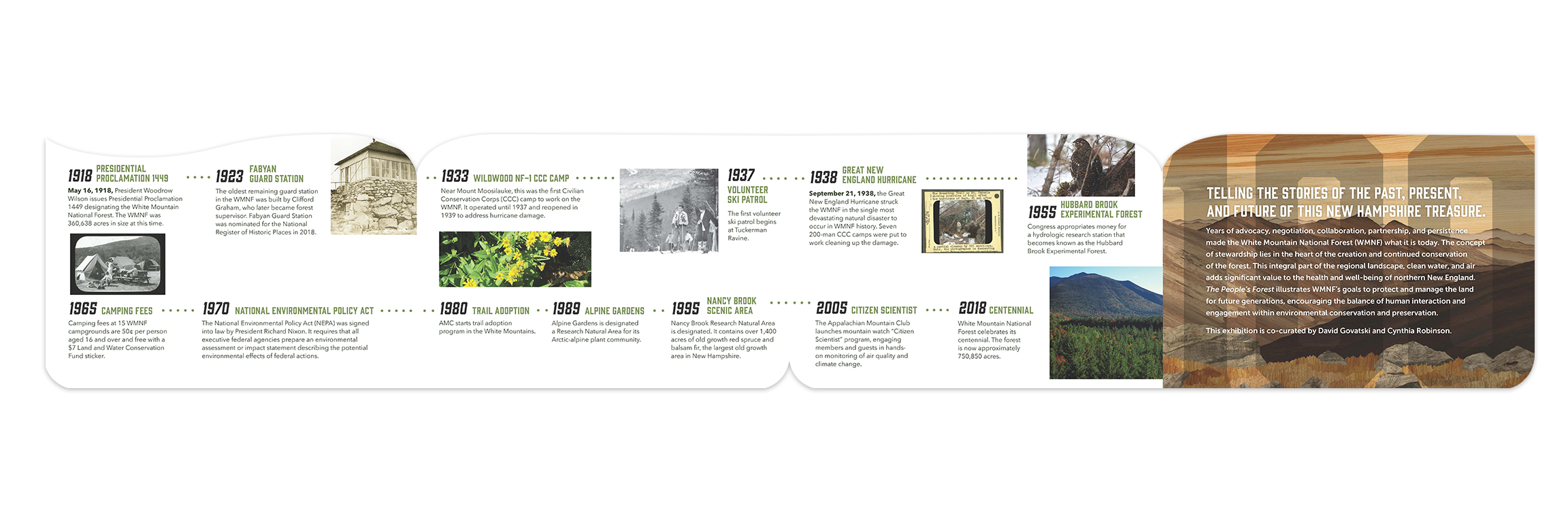 These materials were created for an exhibition at Plymouth State University's Museum of the White Mountains. The exhibition celebrated the centennial of the White Mountain National Forest.