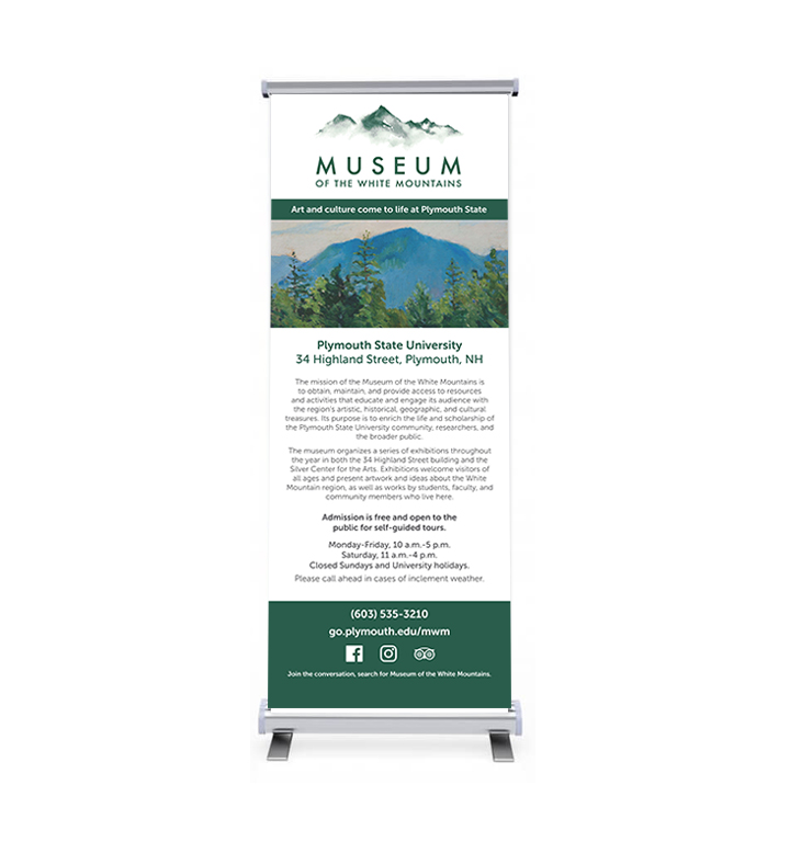 A pull banner was created both for the exhibition and the museum itself. The exhibition banner was part of a traveling display that went out to other locations across the state.
