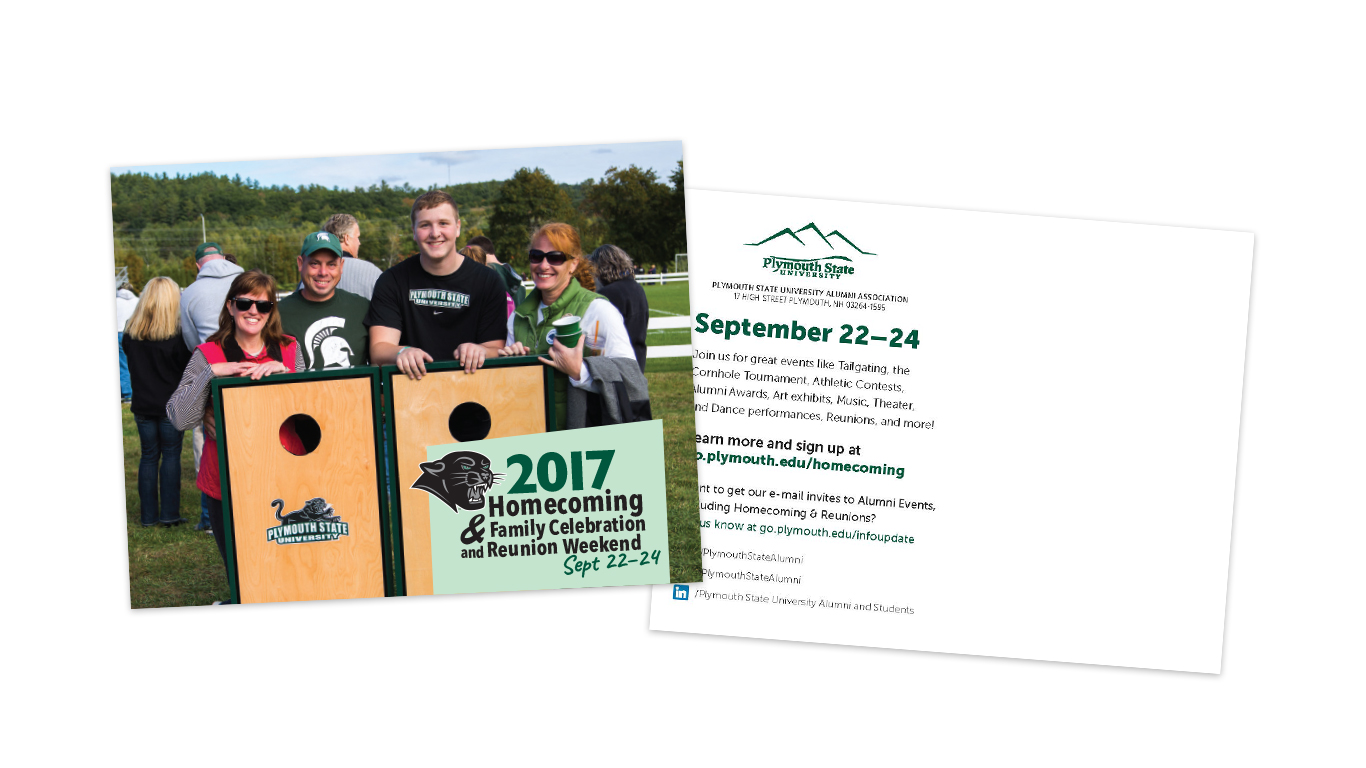 Postcard sent to alumni for 2017 Homecoming weekend.