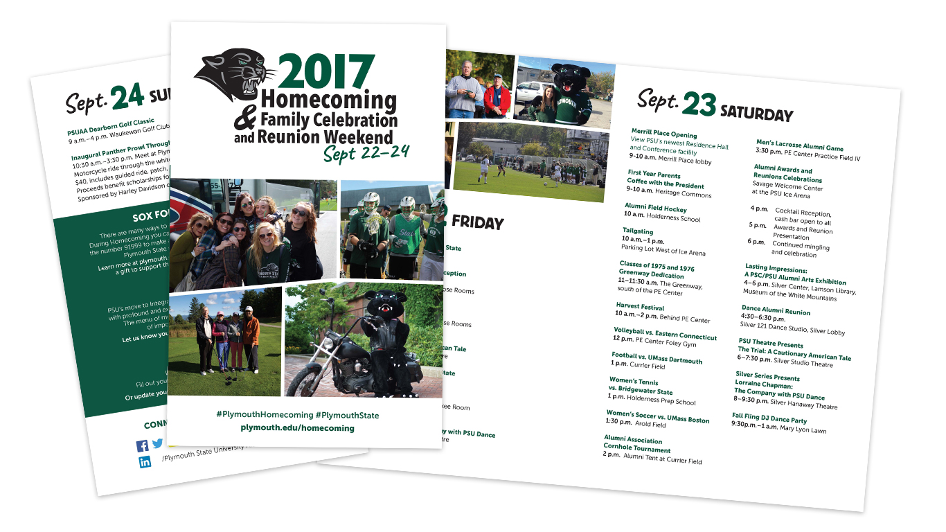 Worked with the alumni relations office to create promotional materials for alumni events including the annual Homecoming.