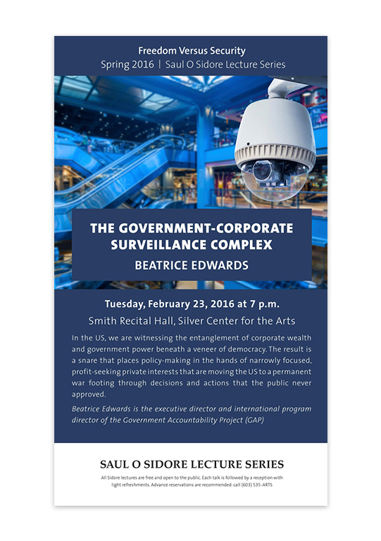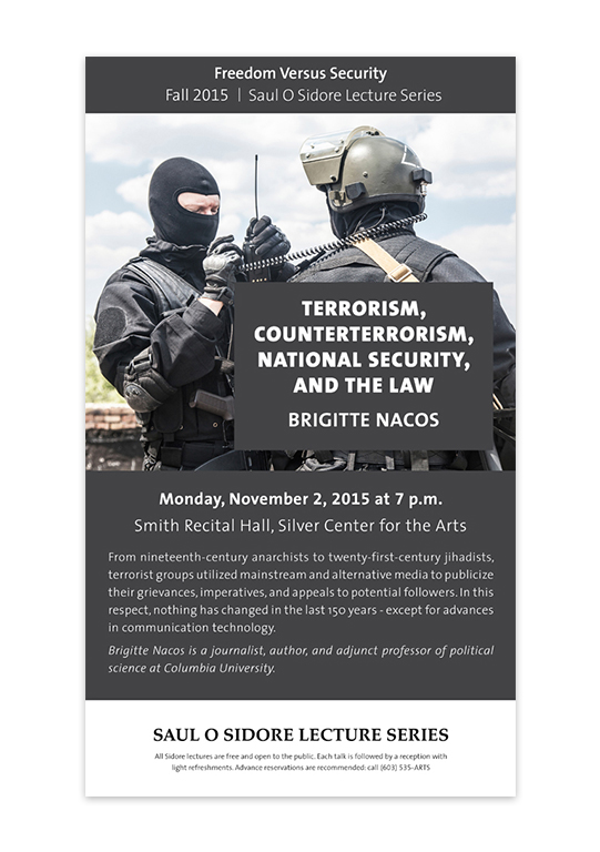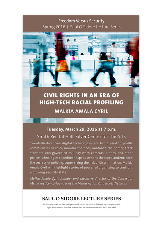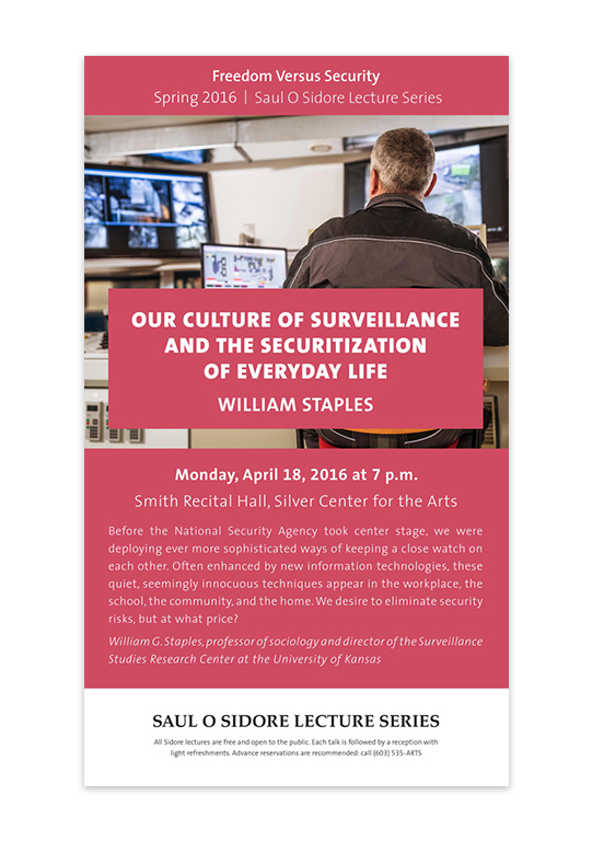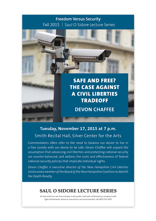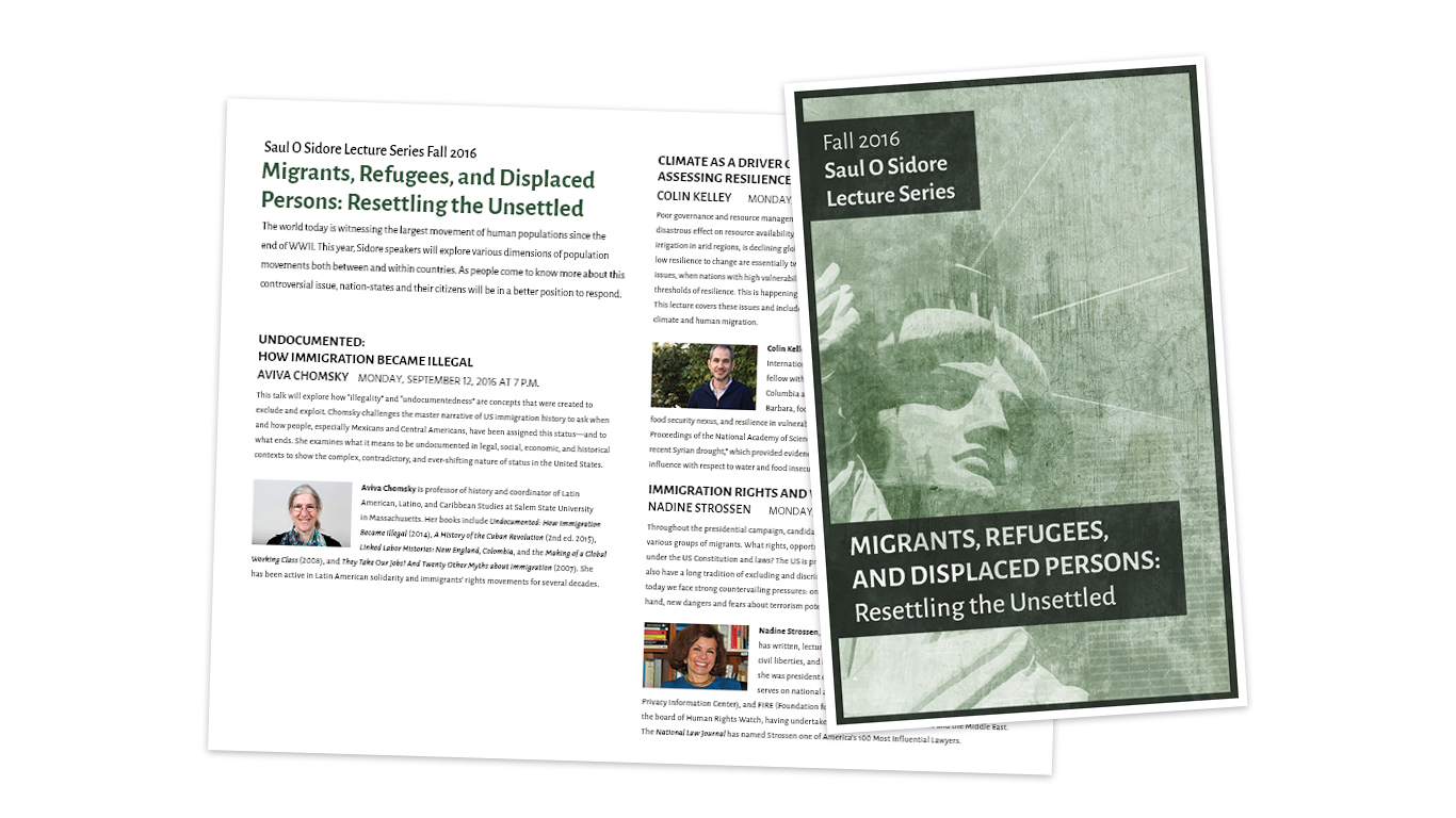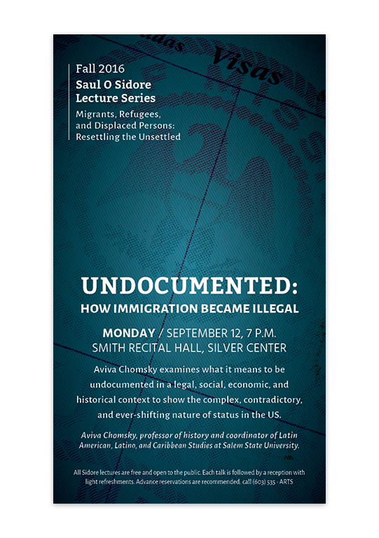 These posters and brochures were designed for a lecture series being held at Plymouth State University. The lectures focus on issues and events in politics, society, and culture. The poster design evolved over the 2016-17 season.