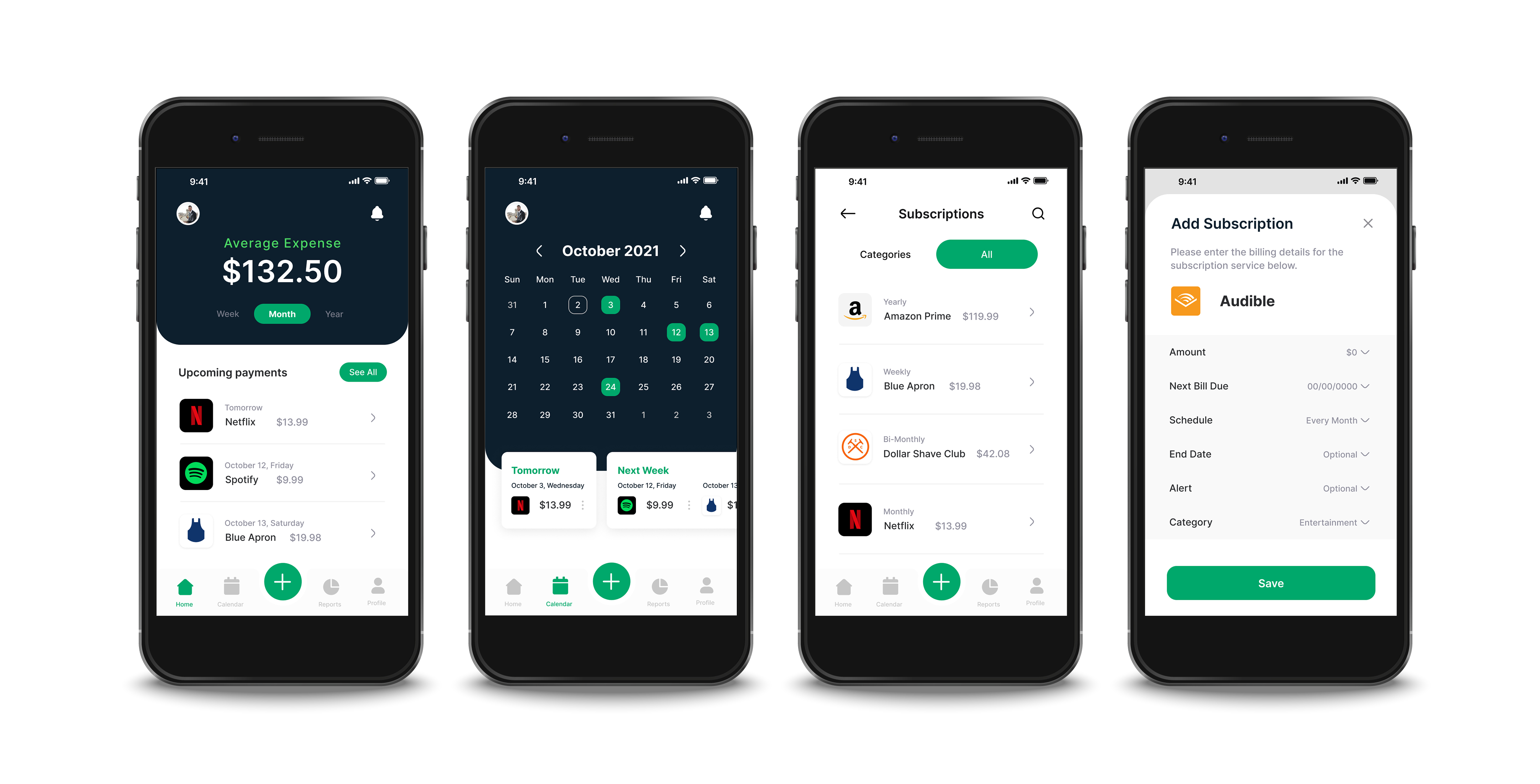 I then downloaded some apps created by industry leaders to see how others approached this problem. These apps included TrackMySubs, Subscription, and Bobby as well as some general financial helper apps like Mint and TrueBill. The apps specifically designed for subscription tracking were poorly designed and the overall user experience was lacking. Some of the specific problems I encountered were: