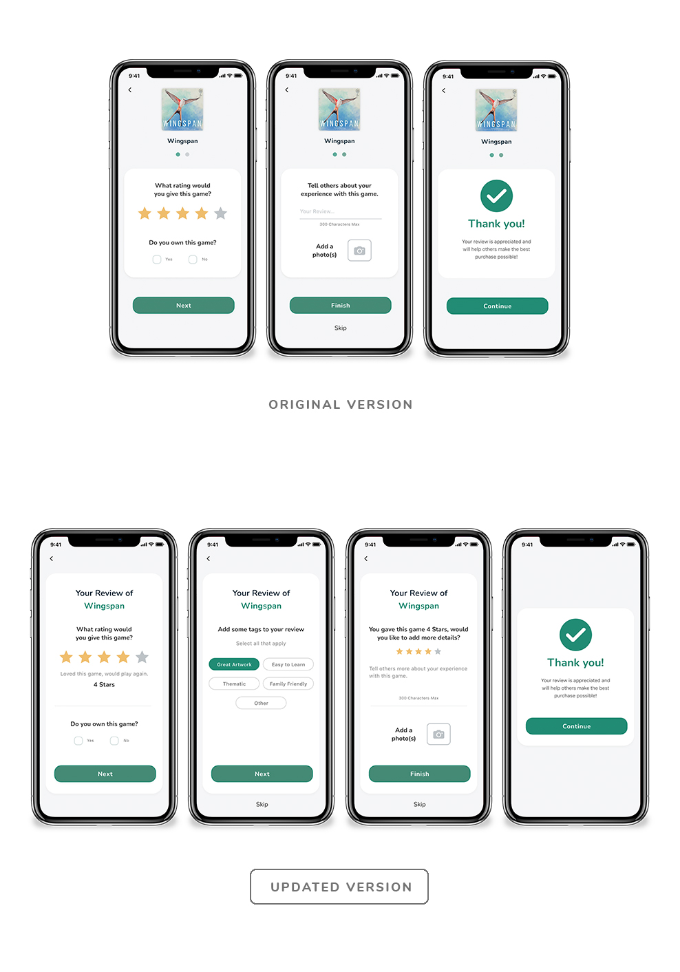 - A statement was added to the third screen of the review reminded the user of their score to help give context to their written review