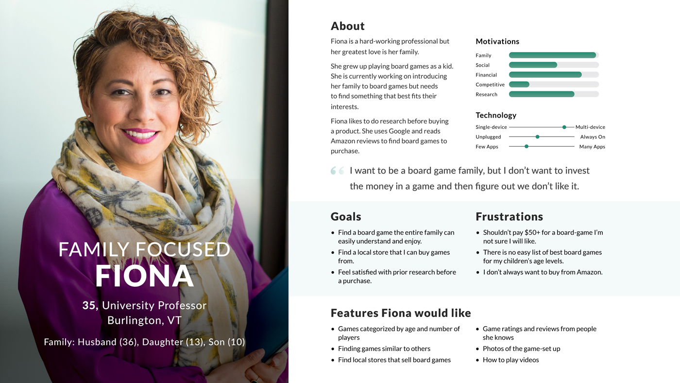 Hearing from potential users helped to reinforce my initial thinking, there was no single source for users to get board game recommendations. Multiple interviewees said they read Amazon reviews but struggled to decide if the game was a right fit. Each user had specific qualifiers they were searching for including mechanics, themes, age range, number of players, and more. In one circumstance a user bought a game that they thought they’d like only to feel like they wasted $50+ on a game they’d never play.